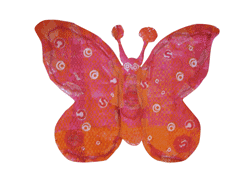 | Plaid Bird, (wings not shown) 2010; 16" x 29", woven discarded plastic, wire, plastic lids and staples | Plaid Butterfly, 2010; 54" x 40", woven discarded plastic | ||||||||||||||||||||
