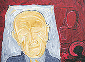a humorous moment? The titles would belie that. Upon further reflection, perhaps cartoon-like elements are appropriate; only a buffoon would refuse help in their last moments. Is our society able to at last recognize the racist, pursued by imaginary fears, as the real figure of fun? Has the racist at last become the lugubrious figure it deserves to be?